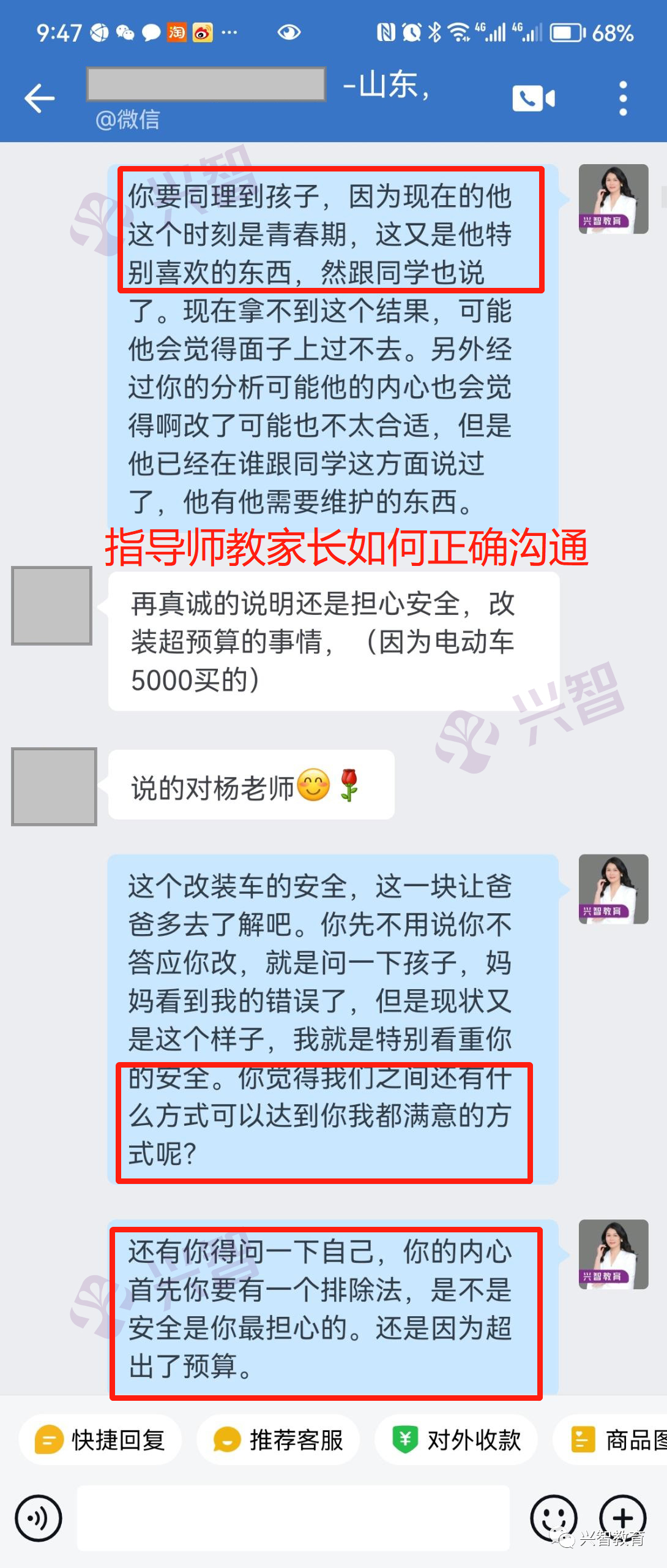 聊天过程中,感觉指导师就像我肚子里的蛔虫,不仅明白我的顾虑,也理解我对儿子的“牺牲”,我的内心不断涌现出崇拜和感激。